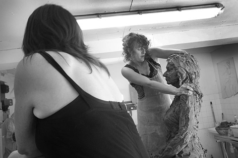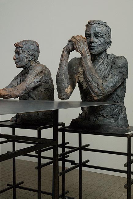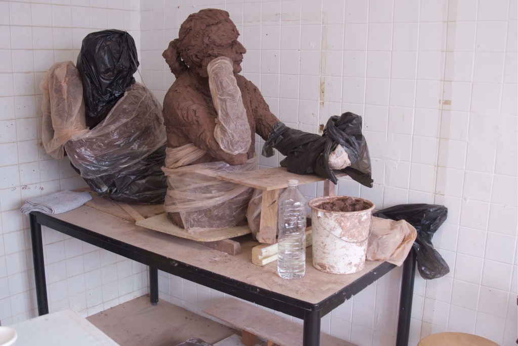 « La présence insolite des statues déclenche d’insolites dialogues auxquels j’assiste ou participe parfois, laissant les sculptures se remplir de toutes sortes d’incongruités. »